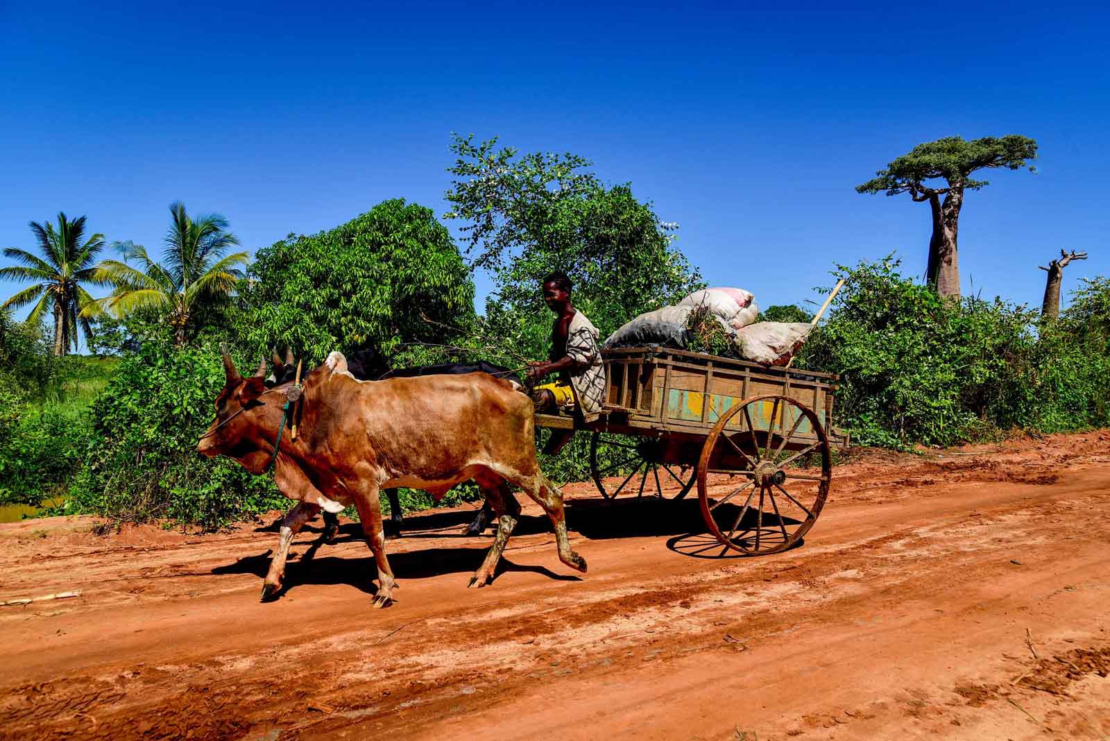 Sur la Route Nationale N°35 à plus de 450 km d’Ivato (Ambositra), à environ 640 km de Tananarive la capitale de Madagascar, la piste s’enfonce à l’infini à travers la steppe. Sous des paysages de savanes africaines, sous la chaleur étouffante on se plairait à entrevoir des mirages, silhouettes fantomatiques de girafes et d’antilopes fuyant des prédateurs. Car ce bout d’Afrique, à la terre rouge de latérite fut un temps, il y a des millions d’années partie intégrante du continent africain. Mais pas de traces de lions ni d’autres animaux qui peuplent les contrées sauvages africaines. Le lémurien, espèce endémique est le symbole de la Grande Ile. Seul le crocodile peuple les rivières de nombreuses régions malgaches.
