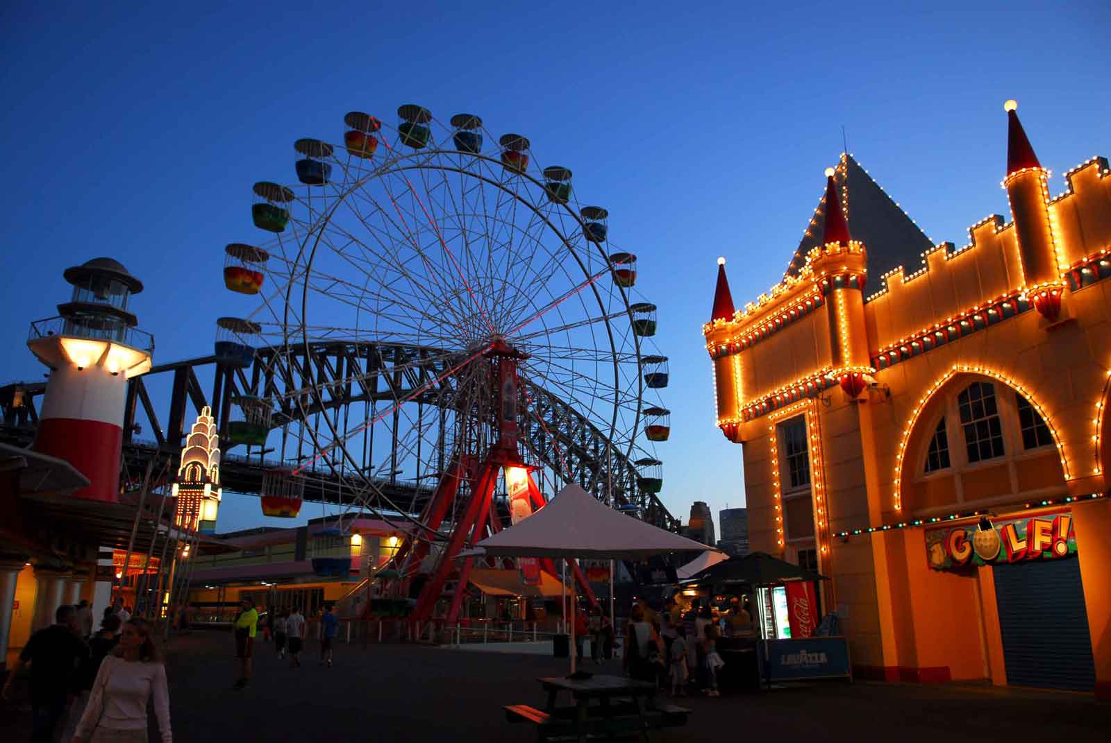 Le Harbour Bridge, surnommé « The Coathanger“ (porte manteau) est cher au cœur des « sydneysiders ». Il relie la rive Sud à la rive Nord de la baie sur la Paramatta River en son point le plus étroit, ou alors le centre de Sydney au centre des affaires. La première pierre du pont fut posée le 26 Mars 1925. Après le test de la structure (passage de 72 locomotives à vapeur), Sa construction s’acheva en 1932 (les cérémonies d’ouverture eurent lieu précisément le 16 Mars 1932) et coûta 20 millions de dollars.