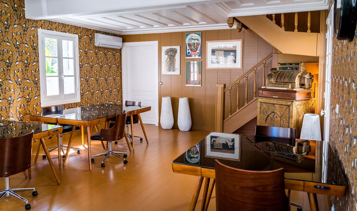 Le vaste espace coworking, tout en parquet utilise la couleur pour se démarquer, à travers des papiers peints de la marque Casamance. Pour Djibril Lo, originaire du Sénégal, « c’est un clin d’œil à ses origines mais aussi l’occasion de mettre en relation la modernité et la tradition, car il importe de savoir d’où l’on vient ».